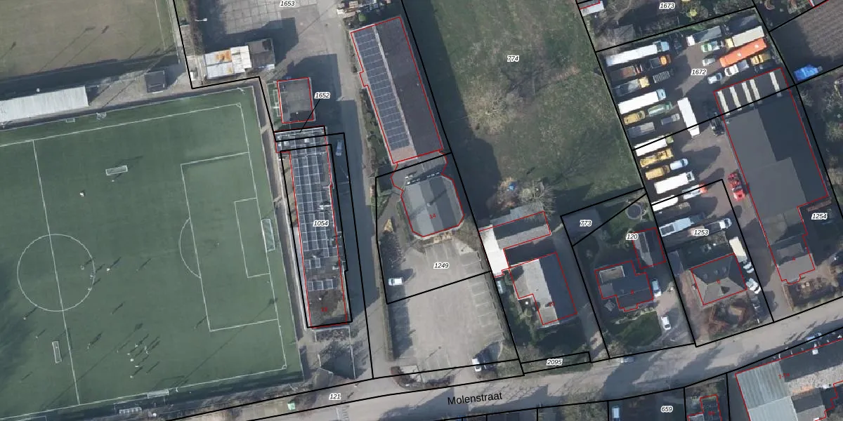 Het perceel waarop Molenstraat 14 staat heeft een oppervlakte van 685 m². Dit is een groot perceel. De perceeloppervlakte wordt geregistreerd door het Kadaster. Gedetailleerde informatie over de maten van dit perceel kunt u vinden in het rapport Kadastrale kaart met maatvoering van Molenstraat 14.