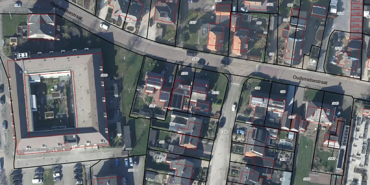 Het perceel waarop Oudsmidsestraat 12 staat heeft een oppervlakte van 260 m². Dit is een middelgroot perceel. De perceeloppervlakte wordt geregistreerd door het Kadaster. Gedetailleerde informatie over de maten van dit perceel kunt u vinden in het rapport Kadastrale kaart met maatvoering van Oudsmidsestraat 12.