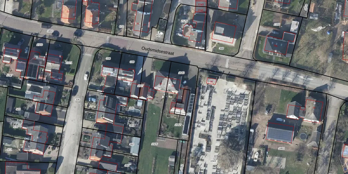 Het perceel waarop Oudsmidsestraat 24 staat heeft een oppervlakte van 660 m². Dit is een groot perceel. De perceeloppervlakte wordt geregistreerd door het Kadaster. Gedetailleerde informatie over de maten van dit perceel kunt u vinden in het rapport Kadastrale kaart met maatvoering van Oudsmidsestraat 24.