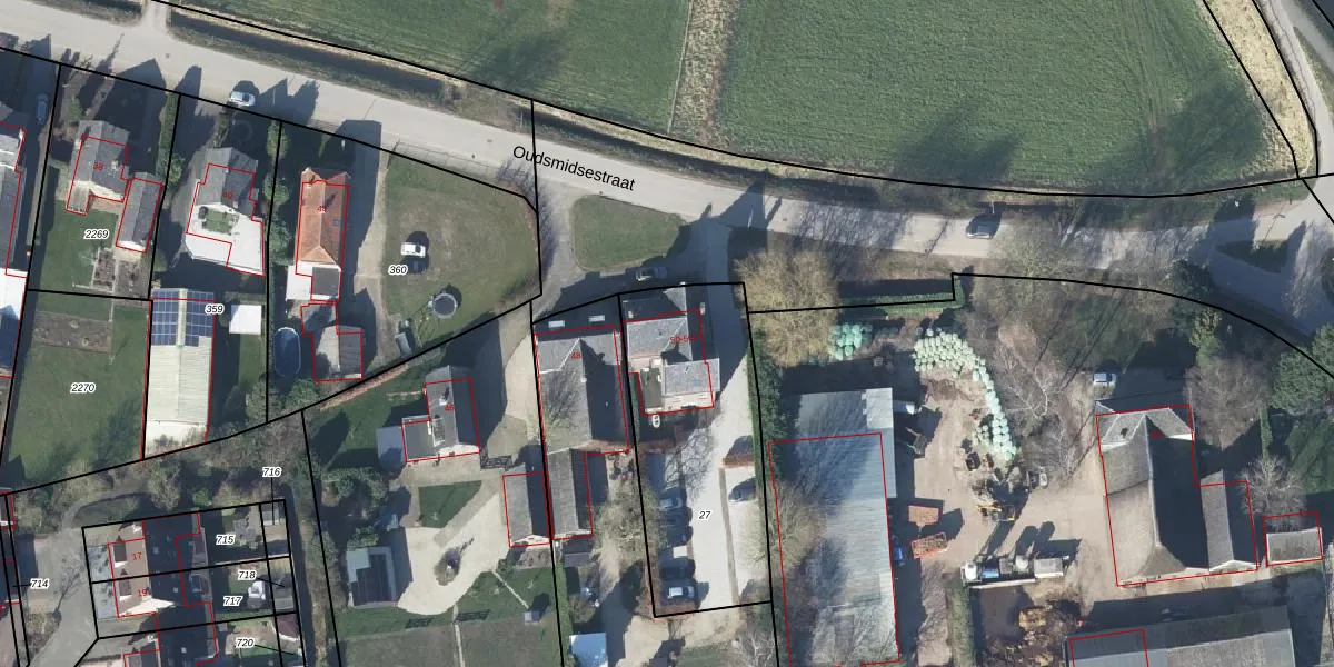 Het perceel waarop Oudsmidsestraat 50 staat heeft een oppervlakte van 910 m². Dit is een groot perceel. De perceeloppervlakte wordt geregistreerd door het Kadaster. Gedetailleerde informatie over de maten van dit perceel kunt u vinden in het rapport Kadastrale kaart met maatvoering van Oudsmidsestraat 50.
