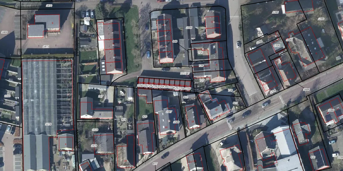 Het adres is gelegen op perceel 2256 in de sectie L en de kadastrale gemeente Lienden. De kadastrale aanduiding is aldus LDN04-L-2256. Het perceel is kleiner dan gemiddeld in Lienden. Het perceel is 20 m² groot, terwijl het gemiddelde ligt op 5559,1 m². Het grootste perceel in de kadastrale gemeente is 32,2 ha. Het kleinste perceel heeft een oppervlakte van 0 m². Op het perceel bevinden zich geen andere adressen. De laatste wijziging in het de Basisregistratie Kadaster (BRK) was op 10-07-2024.