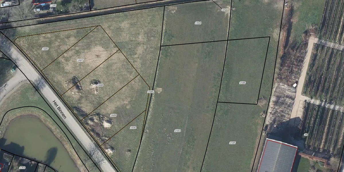 Het adres is gelegen op perceel 1593 in de sectie N en de kadastrale gemeente Lienden. De kadastrale aanduiding is aldus LDN04-N-1593. Het perceel is 3910 m² groot. Dat is kleiner dan de gemiddelde perceeloppervlakte in Lienden, dat op 5561,89 m² ligt. De grootste perceeloppervlakte in de kadastrale gemeente is 32,2 ha. De kleinste oppervlakte bedraagt 0 m². Dit is het enige adres dat aanwezig is op het perceel. De huidige grenzen van het perceel zijn digitaal in de Basisregistratie Kadaster (BRK) geregistreerd op 20-03-2026.