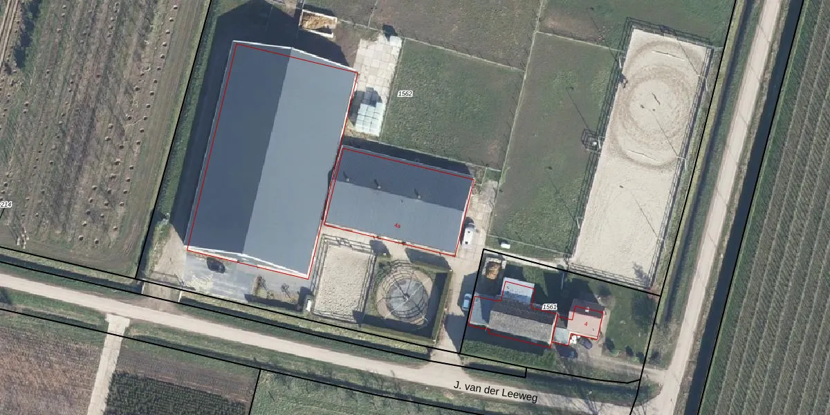 Het perceel waarop Veldstraat 4-a staat heeft een oppervlakte van 1,4 ha. Dit is een zeer groot perceel. De perceeloppervlakte wordt geregistreerd door het Kadaster. Gedetailleerde informatie over de maten van dit perceel kunt u vinden in het rapport Kadastrale kaart met maatvoering van Veldstraat 4-a.