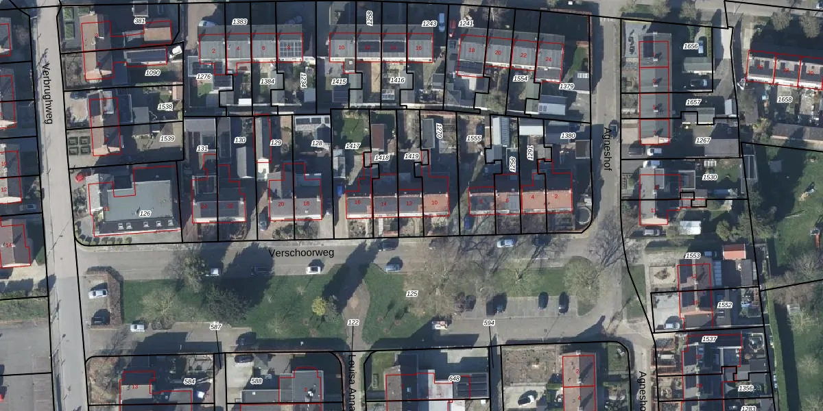 Verschoorweg 12 is gelegen op kadastraal perceel LDN04N1419. Deze kadastrale aanduiding is uniek en wordt gebruikt door het Kadaster om eigendomsrechten en andere zakelijke rechten vast te leggen. Het perceel maakt onderdeel uit van de kadastrale gemeente Lienden.