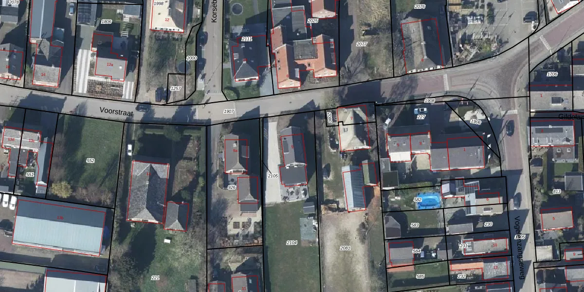 Voorstraat 9 is gelegen op kadastraal perceel LDN04L2104. Deze kadastrale aanduiding is uniek en wordt gebruikt door het Kadaster om eigendomsrechten en andere zakelijke rechten vast te leggen. Het perceel maakt onderdeel uit van de kadastrale gemeente Lienden.