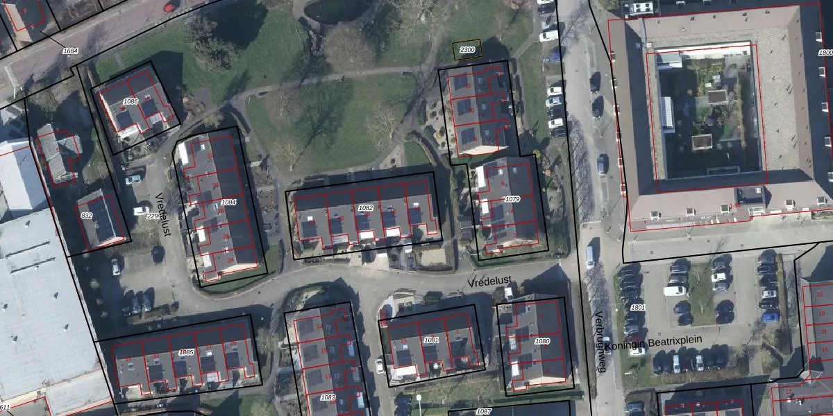 Het perceel waarop Vredelust 14 staat heeft een oppervlakte van 602 m². Dit is een groot perceel. De perceeloppervlakte wordt geregistreerd door het Kadaster. Gedetailleerde informatie over de maten van dit perceel kunt u vinden in het rapport Kadastrale kaart met maatvoering van Vredelust 14.