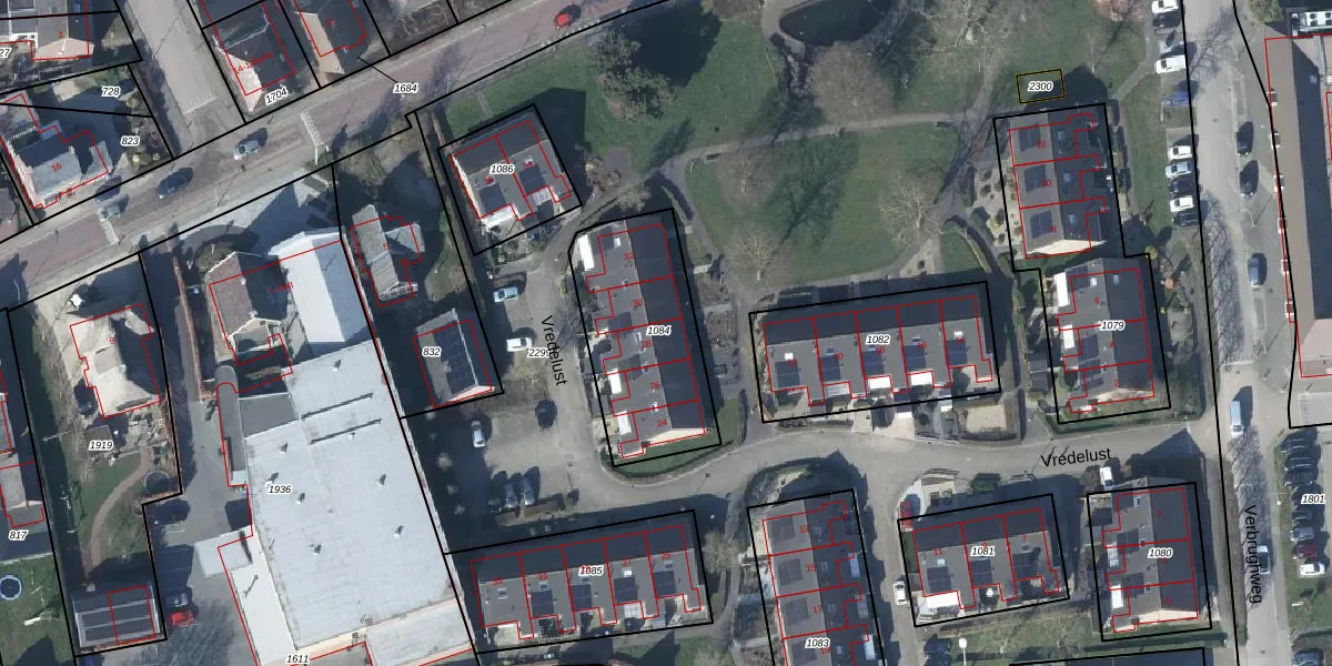 Het perceel waarop Vredelust 28 staat heeft een oppervlakte van 594 m². Dit is een groot perceel. De perceeloppervlakte wordt geregistreerd door het Kadaster. Gedetailleerde informatie over de maten van dit perceel kunt u vinden in het rapport Kadastrale kaart met maatvoering van Vredelust 28.