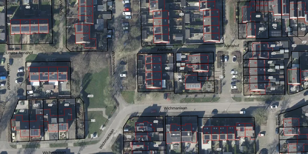 Het perceel waarop Wichmanlaan 21 staat heeft een oppervlakte van 579 m². Dit is een groot perceel. De perceeloppervlakte wordt geregistreerd door het Kadaster. Gedetailleerde informatie over de maten van dit perceel kunt u vinden in het rapport Kadastrale kaart met maatvoering van Wichmanlaan 21.