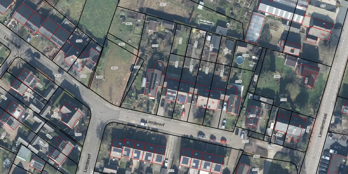 Lierdererf 33 is gelegen op kadastraal perceel BBG01M2101. Deze kadastrale aanduiding is uniek en wordt gebruikt door het Kadaster om eigendomsrechten en andere zakelijke rechten vast te leggen. Het perceel maakt onderdeel uit van de kadastrale gemeente Beekbergen.