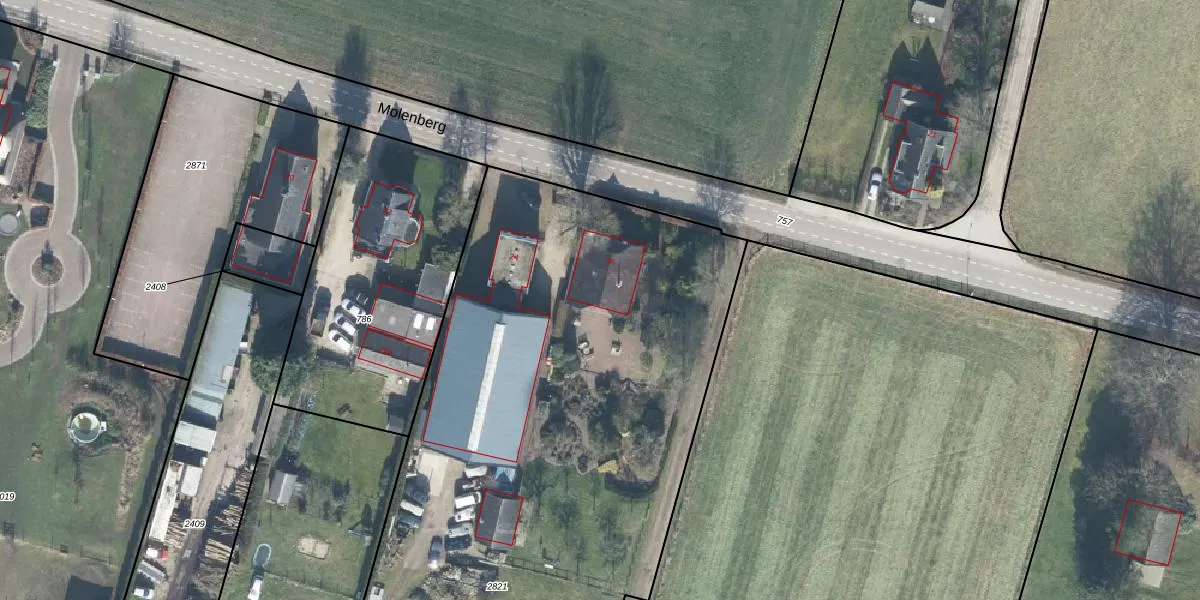 Het perceel waarop Molenberg 26 staat heeft een oppervlakte van 6030 m². Dit is een zeer groot perceel. De perceeloppervlakte wordt geregistreerd door het Kadaster. Gedetailleerde informatie over de maten van dit perceel kunt u vinden in het rapport Kadastrale kaart met maatvoering van Molenberg 26.