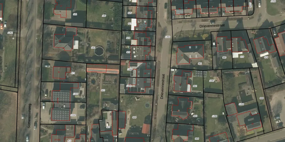 Drievennestraat 24 is gelegen op kadastraal perceel SMR02O1348. Deze kadastrale aanduiding is uniek en wordt gebruikt door het Kadaster om eigendomsrechten en andere zakelijke rechten vast te leggen. Het perceel maakt onderdeel uit van de kadastrale gemeente Someren.