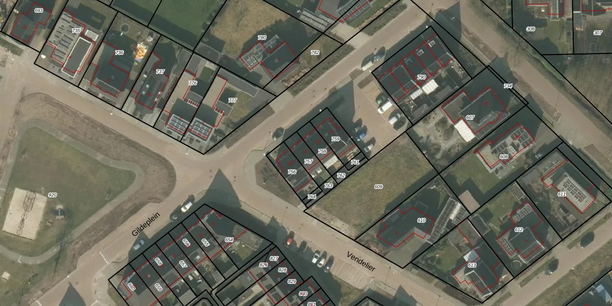 Het perceel waarop Gildeplein 15 staat heeft een oppervlakte van 100 m². Dit is een middelgroot perceel. De perceeloppervlakte wordt geregistreerd door het Kadaster. Gedetailleerde informatie over de maten van dit perceel kunt u vinden in het rapport Kadastrale kaart met maatvoering van Gildeplein 15.