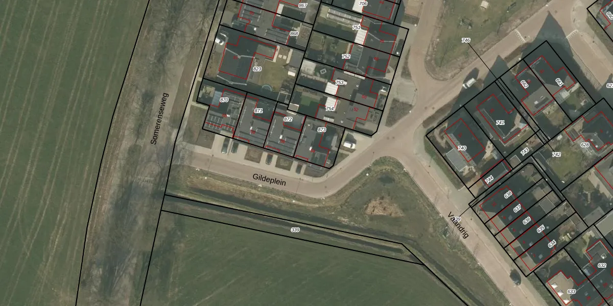 Gildeplein 54 is gelegen op kadastraal perceel SMR02N873. Deze kadastrale aanduiding is uniek en wordt gebruikt door het Kadaster om eigendomsrechten en andere zakelijke rechten vast te leggen. Het perceel maakt onderdeel uit van de kadastrale gemeente Someren.