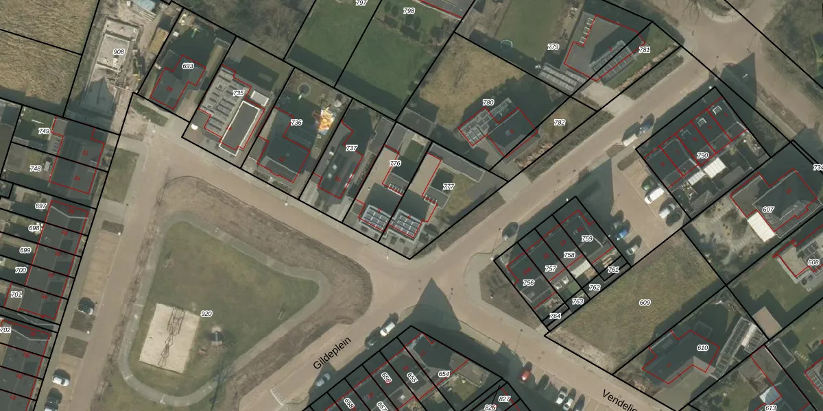 Het perceel waarop Gildeplein 6 staat heeft een oppervlakte van 415 m². Dit is een groot perceel. De perceeloppervlakte wordt geregistreerd door het Kadaster. Gedetailleerde informatie over de maten van dit perceel kunt u vinden in het rapport Kadastrale kaart met maatvoering van Gildeplein 6.