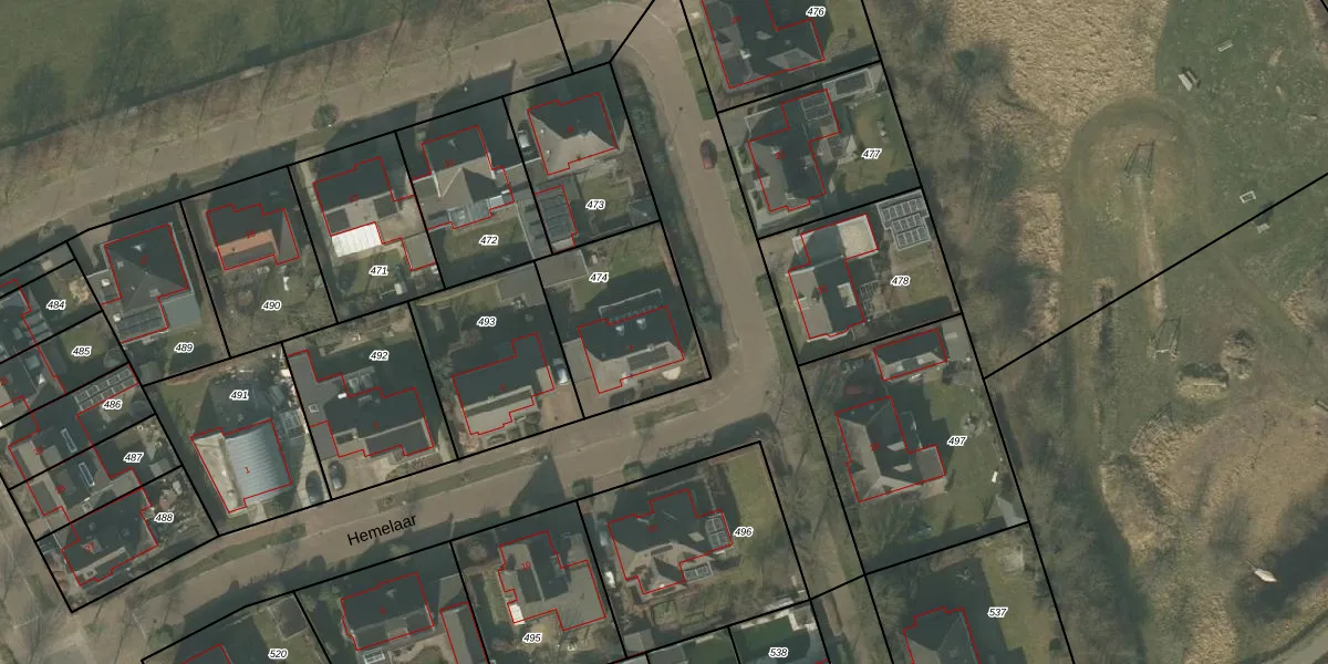 Het perceel waarop Hemelaar 7 staat heeft een oppervlakte van 500 m². Dit is een groot perceel. De perceeloppervlakte wordt geregistreerd door het Kadaster. Gedetailleerde informatie over de maten van dit perceel kunt u vinden in het rapport Kadastrale kaart met maatvoering van Hemelaar 7.
