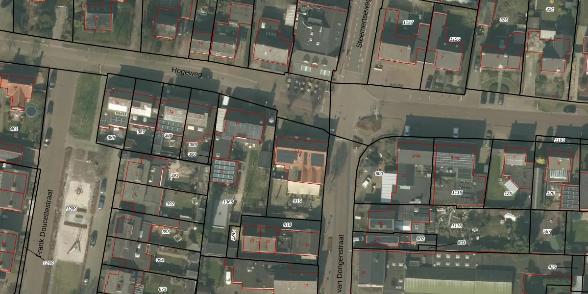 Het perceel waarop Hogeweg 1 staat heeft een oppervlakte van 607 m². Dit is een groot perceel. De perceeloppervlakte wordt geregistreerd door het Kadaster. Gedetailleerde informatie over de maten van dit perceel kunt u vinden in het rapport Kadastrale kaart met maatvoering van Hogeweg 1.