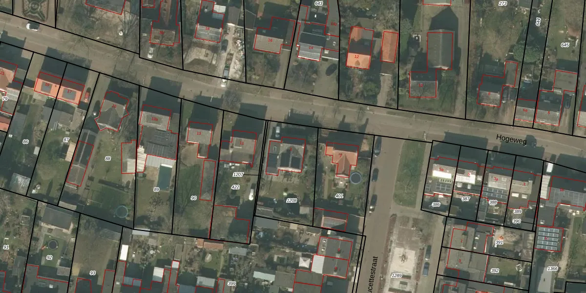 Het perceel waarop Hogeweg 9 staat heeft een oppervlakte van 609 m². Dit is een groot perceel. De perceeloppervlakte wordt geregistreerd door het Kadaster. Gedetailleerde informatie over de maten van dit perceel kunt u vinden in het rapport Kadastrale kaart met maatvoering van Hogeweg 9.