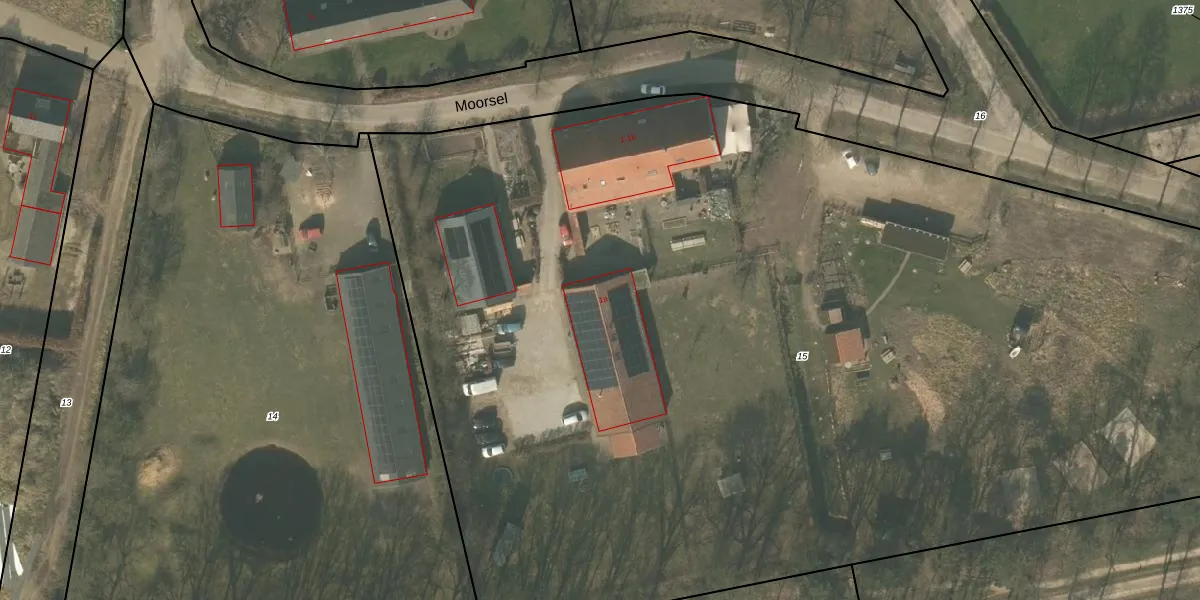 Het perceel waarop Moorsel 1-a staat heeft een oppervlakte van 1,1 ha. Dit is een zeer groot perceel. De perceeloppervlakte wordt geregistreerd door het Kadaster. Gedetailleerde informatie over de maten van dit perceel kunt u vinden in het rapport Kadastrale kaart met maatvoering van Moorsel 1-a.