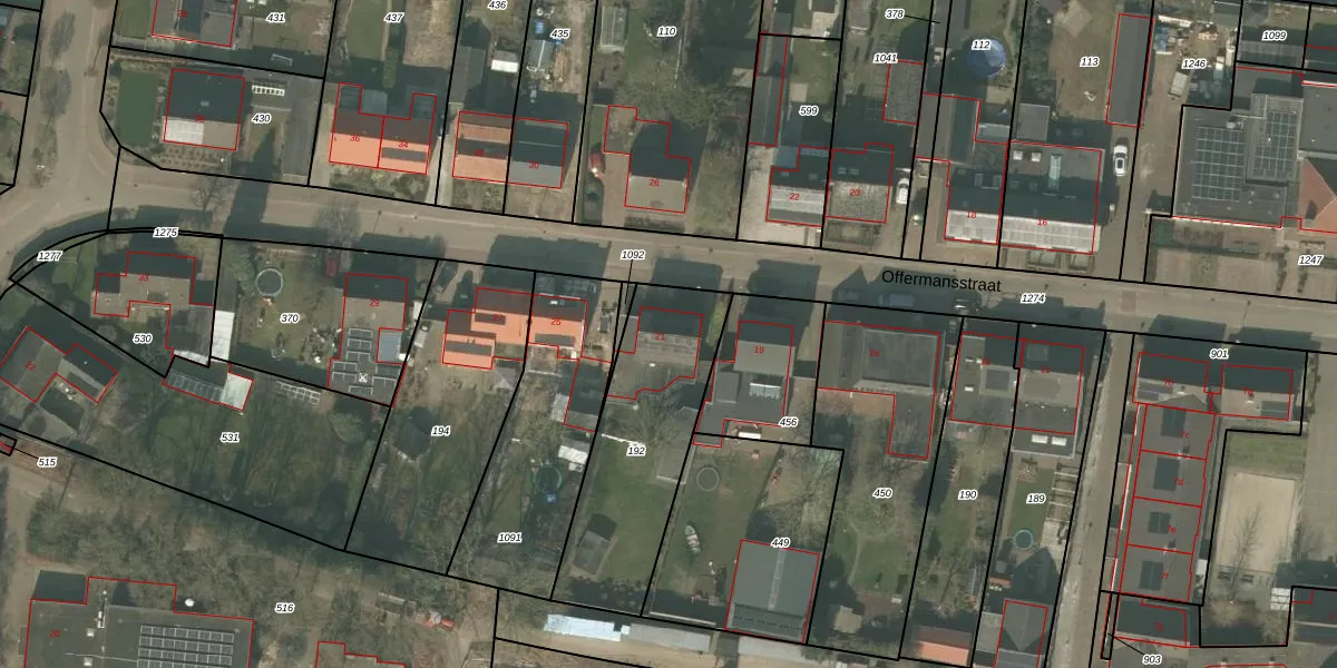 Het perceel waarop Offermansstraat 21 staat heeft een oppervlakte van 695 m². Dit is een groot perceel. De perceeloppervlakte wordt geregistreerd door het Kadaster. Gedetailleerde informatie over de maten van dit perceel kunt u vinden in het rapport Kadastrale kaart met maatvoering van Offermansstraat 21.