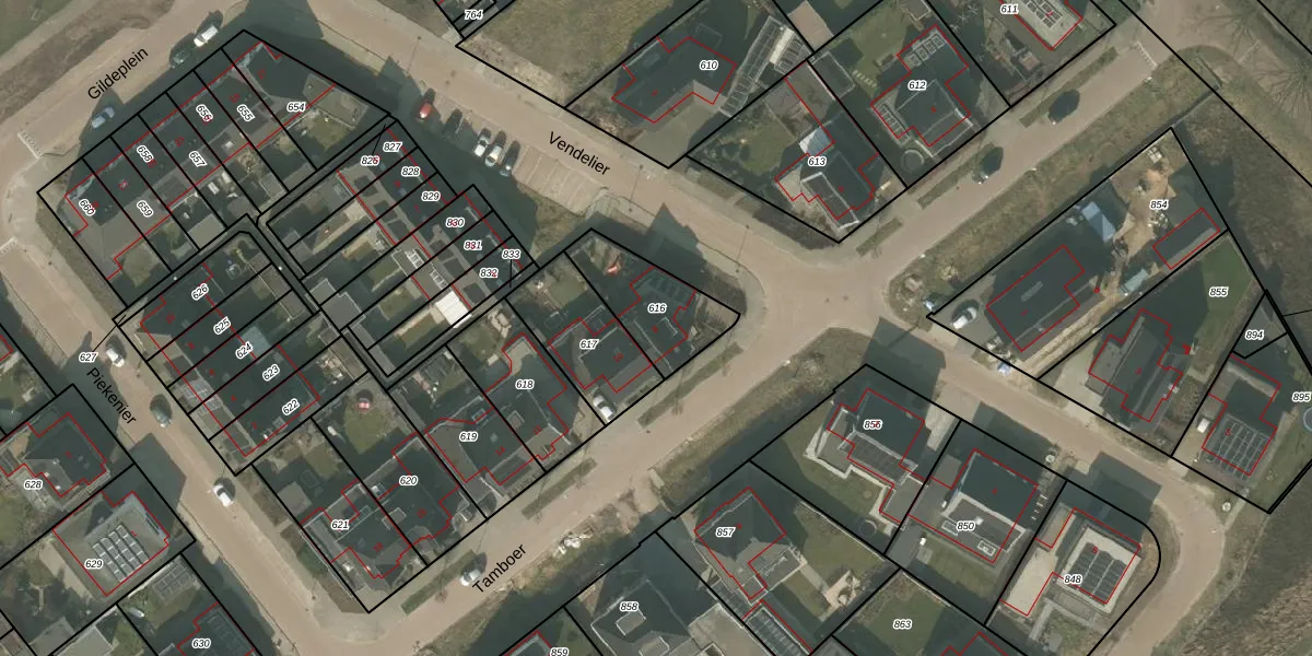 Gebruik de zoekbalk of klik op een perceel voor informatie over de adressen binnen dit perceel.