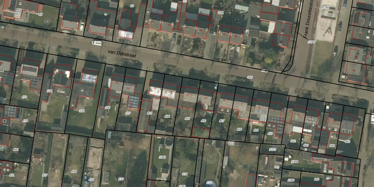 Het perceel waarop van Dijkstraat 13 staat heeft een oppervlakte van 303 m². Dit is een groot perceel. De perceeloppervlakte wordt geregistreerd door het Kadaster. Gedetailleerde informatie over de maten van dit perceel kunt u vinden in het rapport Kadastrale kaart met maatvoering van van Dijkstraat 13.