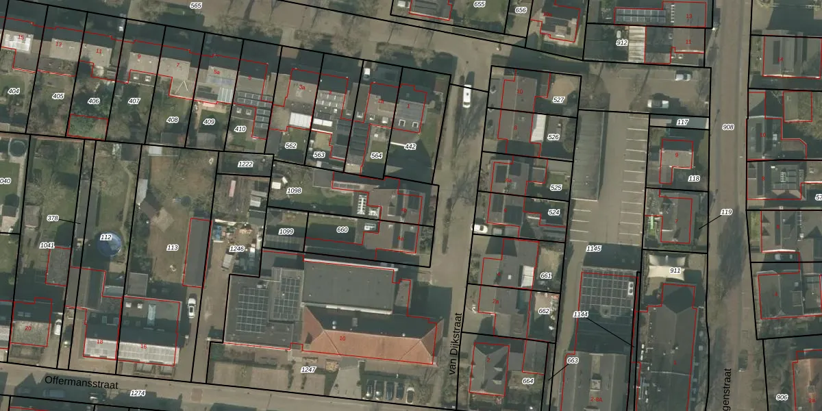 Gebruik de zoekbalk of klik op een perceel voor informatie over de adressen binnen dit perceel.