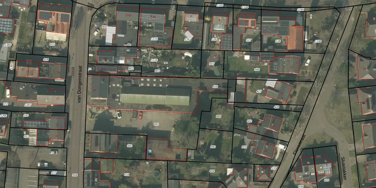 Het perceel waarop van Dongenstraat 18-v staat heeft een oppervlakte van 2405 m². Dit is een zeer groot perceel. De perceeloppervlakte wordt geregistreerd door het Kadaster. Gedetailleerde informatie over de maten van dit perceel kunt u vinden in het rapport Kadastrale kaart met maatvoering van van Dongenstraat 18-v.