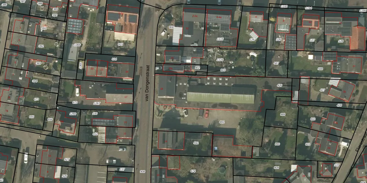 Het perceel waarop van Dongenstraat 18-r staat heeft een oppervlakte van 2405 m². Dit is een zeer groot perceel. De perceeloppervlakte wordt geregistreerd door het Kadaster. Gedetailleerde informatie over de maten van dit perceel kunt u vinden in het rapport Kadastrale kaart met maatvoering van van Dongenstraat 18-r.