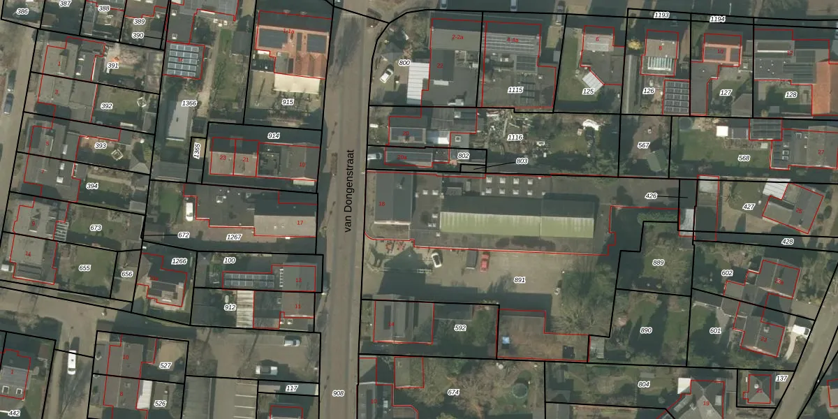 Het perceel waarop van Dongenstraat 18-y staat heeft een oppervlakte van 2405 m². Dit is een zeer groot perceel. De perceeloppervlakte wordt geregistreerd door het Kadaster. Gedetailleerde informatie over de maten van dit perceel kunt u vinden in het rapport Kadastrale kaart met maatvoering van van Dongenstraat 18-y.