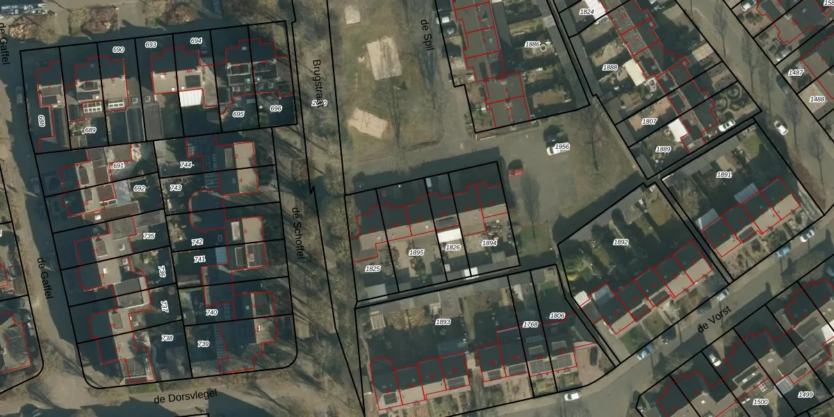 Het perceel waarop de Spil 23 staat heeft een oppervlakte van 302 m². Dit is een groot perceel. De perceeloppervlakte wordt geregistreerd door het Kadaster. Gedetailleerde informatie over de maten van dit perceel kunt u vinden in het rapport Kadastrale kaart met maatvoering van de Spil 23.
