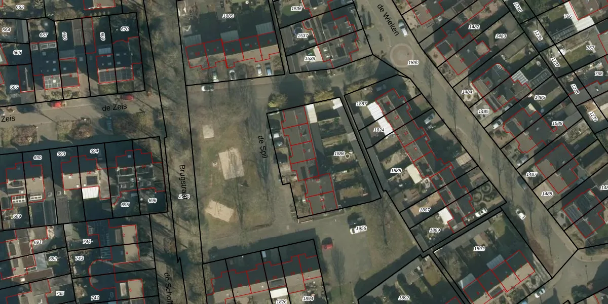 Het perceel waarop de Spil 5 staat heeft een oppervlakte van 964 m². Dit is een groot perceel. De perceeloppervlakte wordt geregistreerd door het Kadaster. Gedetailleerde informatie over de maten van dit perceel kunt u vinden in het rapport Kadastrale kaart met maatvoering van de Spil 5.