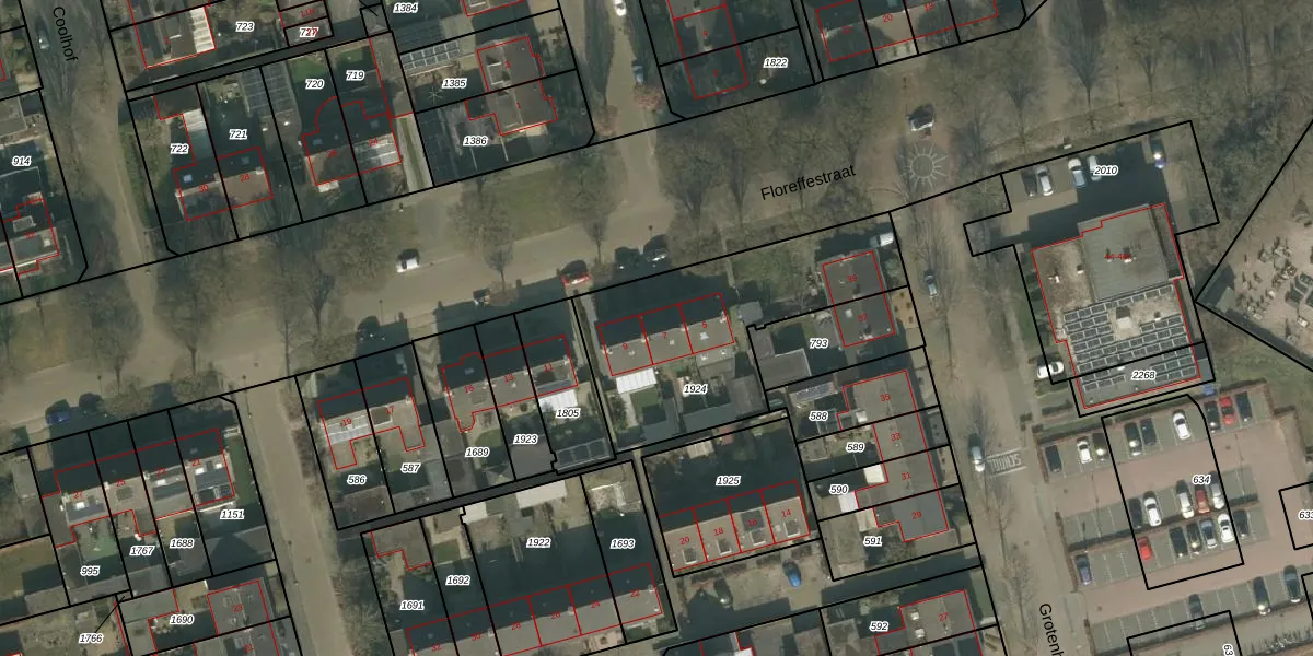 Het perceel waarop Floreffestraat 7 staat heeft een oppervlakte van 905 m². Dit is een groot perceel. De perceeloppervlakte wordt geregistreerd door het Kadaster. Gedetailleerde informatie over de maten van dit perceel kunt u vinden in het rapport Kadastrale kaart met maatvoering van Floreffestraat 7.