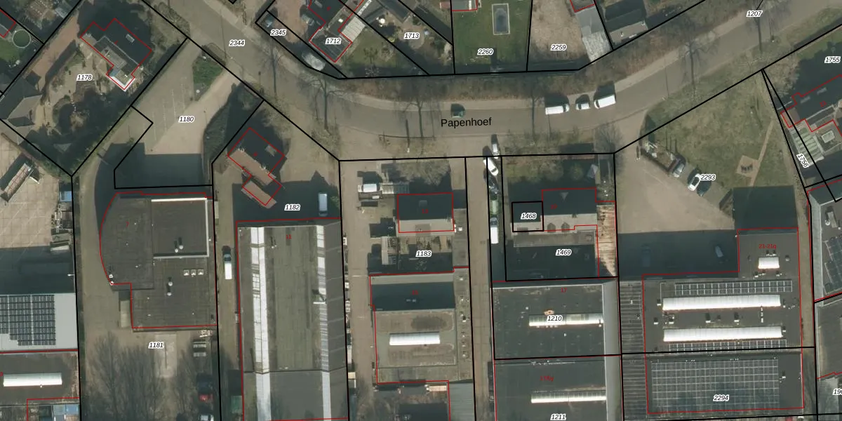 Het perceel waarop Papenhoef 13 staat heeft een oppervlakte van 1938 m². Dit is een zeer groot perceel. De perceeloppervlakte wordt geregistreerd door het Kadaster. Gedetailleerde informatie over de maten van dit perceel kunt u vinden in het rapport Kadastrale kaart met maatvoering van Papenhoef 13.