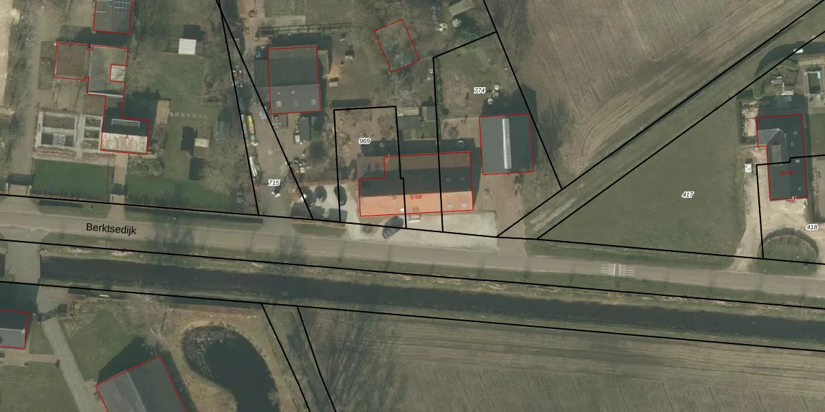 Het perceel waarop Berktsedijk 5 staat heeft een oppervlakte van 1,0 ha. Dit is een zeer groot perceel. De perceeloppervlakte wordt geregistreerd door het Kadaster. Gedetailleerde informatie over de maten van dit perceel kunt u vinden in het rapport Kadastrale kaart met maatvoering van Berktsedijk 5.
