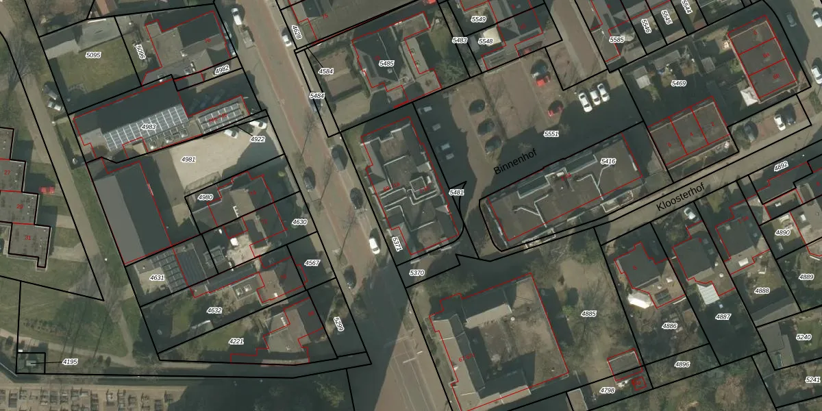 Binnenhof 5 is gelegen op kadastraal perceel DNE00G5371. Deze kadastrale aanduiding is uniek en wordt gebruikt door het Kadaster om eigendomsrechten en andere zakelijke rechten vast te leggen. Het perceel maakt onderdeel uit van de kadastrale gemeente Deurne.