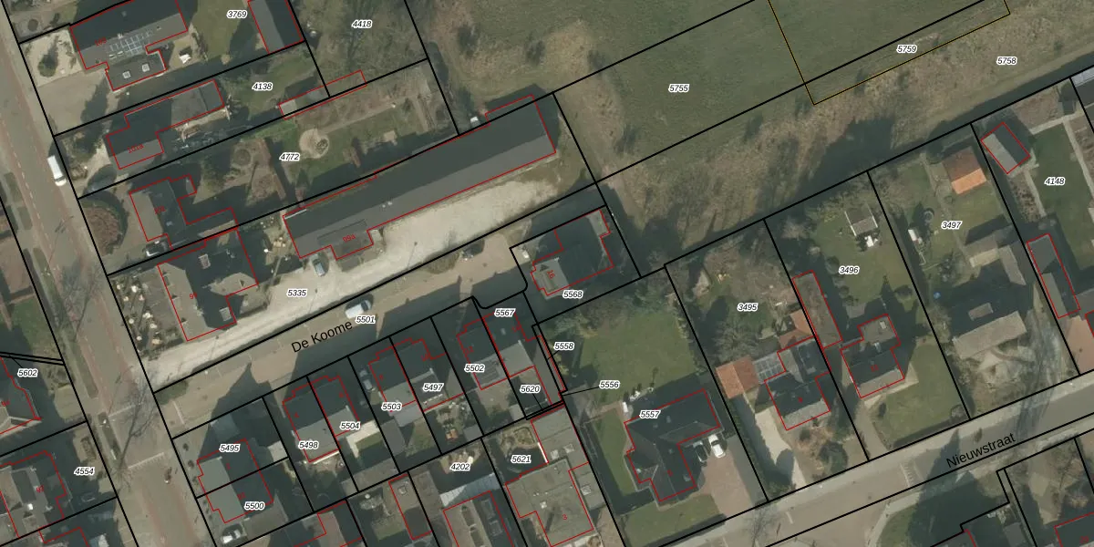 De Koome 16 is gelegen op kadastraal perceel DNE00G5568. Deze kadastrale aanduiding is uniek en wordt gebruikt door het Kadaster om eigendomsrechten en andere zakelijke rechten vast te leggen. Het perceel maakt onderdeel uit van de kadastrale gemeente Deurne.