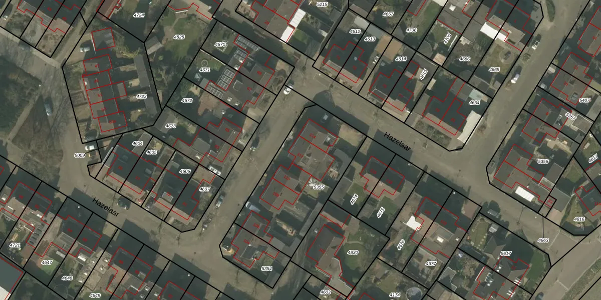 Het perceel waarop Hazelaar 112 staat heeft een oppervlakte van 1076 m². Dit is een zeer groot perceel. De perceeloppervlakte wordt geregistreerd door het Kadaster. Gedetailleerde informatie over de maten van dit perceel kunt u vinden in het rapport Kadastrale kaart met maatvoering van Hazelaar 112.