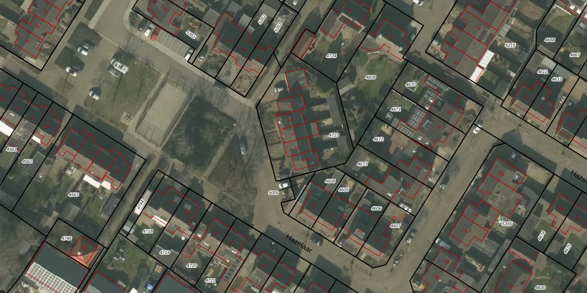 Het perceel waarop Hazelaar 53 staat heeft een oppervlakte van 964 m². Dit is een groot perceel. De perceeloppervlakte wordt geregistreerd door het Kadaster. Gedetailleerde informatie over de maten van dit perceel kunt u vinden in het rapport Kadastrale kaart met maatvoering van Hazelaar 53.