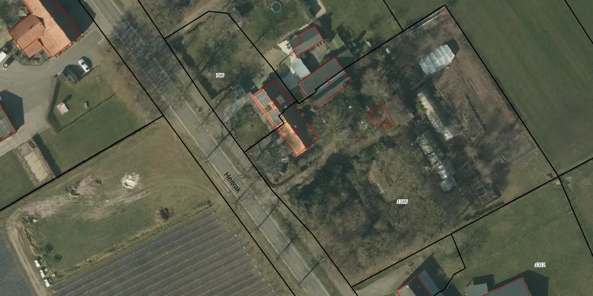 Het perceel waarop Heitrak 36 staat heeft een oppervlakte van 5290 m². Dit is een zeer groot perceel. De perceeloppervlakte wordt geregistreerd door het Kadaster. Gedetailleerde informatie over de maten van dit perceel kunt u vinden in het rapport Kadastrale kaart met maatvoering van Heitrak 36.