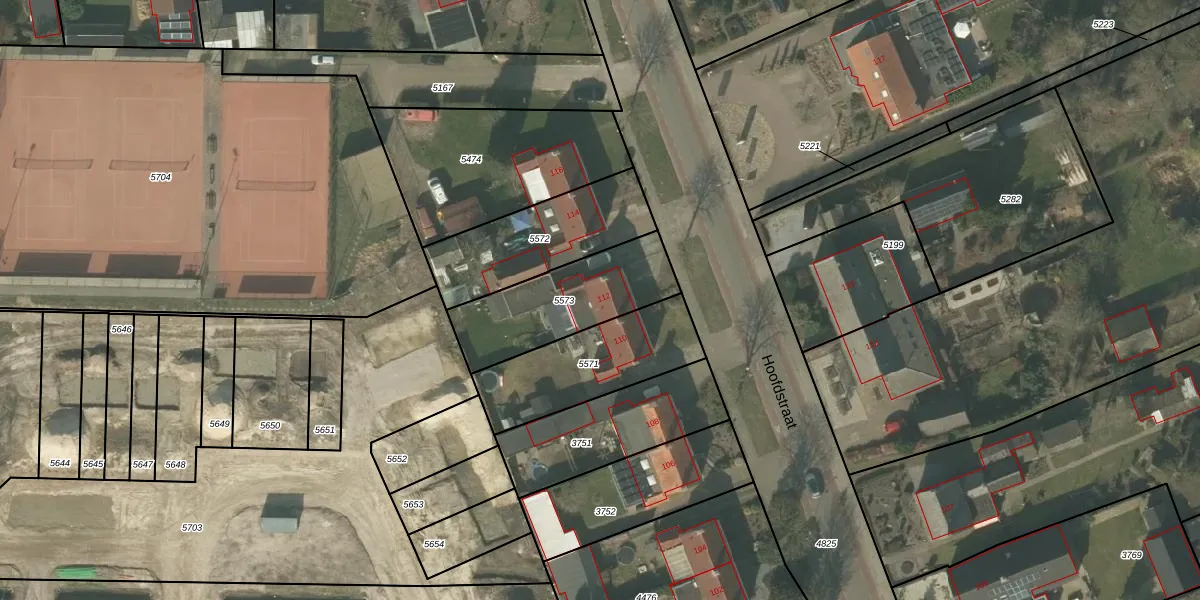 Het perceel waarop Hoofdstraat 112 staat heeft een oppervlakte van 400 m². Dit is een groot perceel. De perceeloppervlakte wordt geregistreerd door het Kadaster. Gedetailleerde informatie over de maten van dit perceel kunt u vinden in het rapport Kadastrale kaart met maatvoering van Hoofdstraat 112.