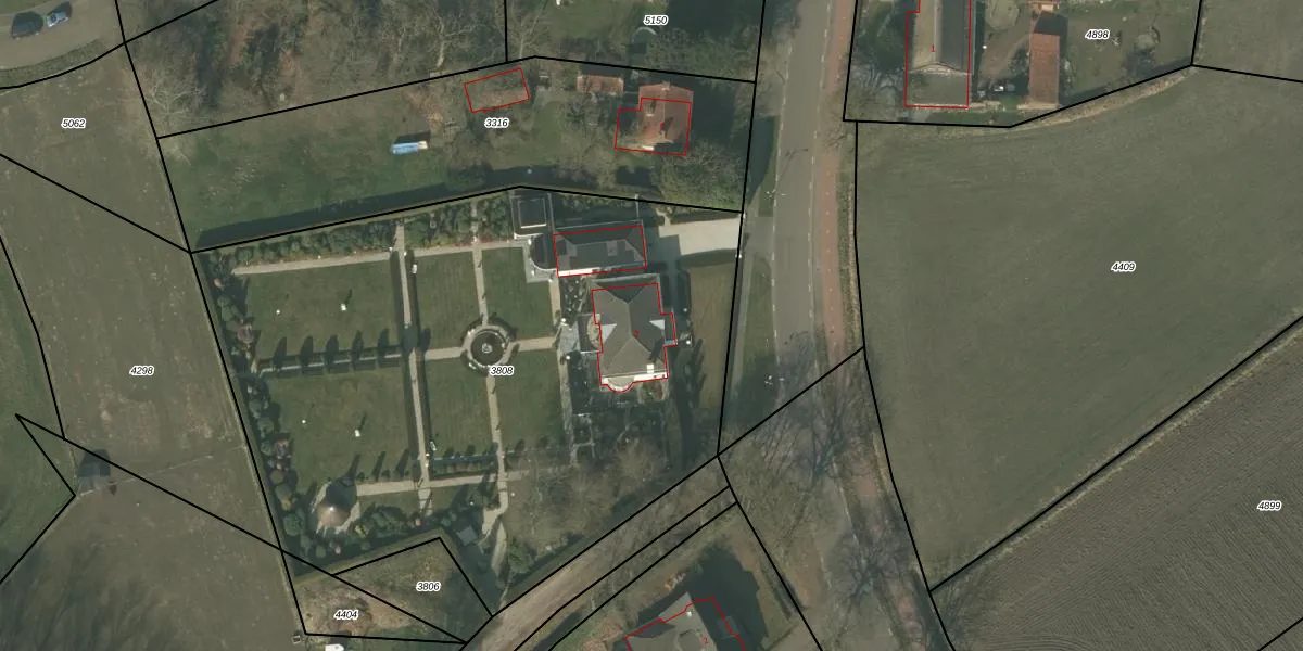 Het perceel waarop Hoofdstraat 2 staat heeft een oppervlakte van 3958 m². Dit is een zeer groot perceel. De perceeloppervlakte wordt geregistreerd door het Kadaster. Gedetailleerde informatie over de maten van dit perceel kunt u vinden in het rapport Kadastrale kaart met maatvoering van Hoofdstraat 2.
