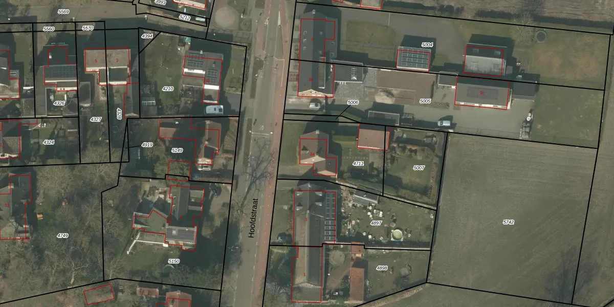 Het perceel waarop Hoofdstraat 3-a staat heeft een oppervlakte van 692 m². Dit is een groot perceel. De perceeloppervlakte wordt geregistreerd door het Kadaster. Gedetailleerde informatie over de maten van dit perceel kunt u vinden in het rapport Kadastrale kaart met maatvoering van Hoofdstraat 3-a.