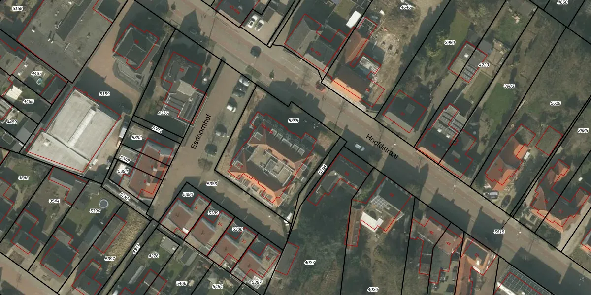 Hoofdstraat 54-a is gelegen op kadastraal perceel DNE00G5385. Deze kadastrale aanduiding is uniek en wordt gebruikt door het Kadaster om eigendomsrechten en andere zakelijke rechten vast te leggen. Het perceel maakt onderdeel uit van de kadastrale gemeente Deurne.