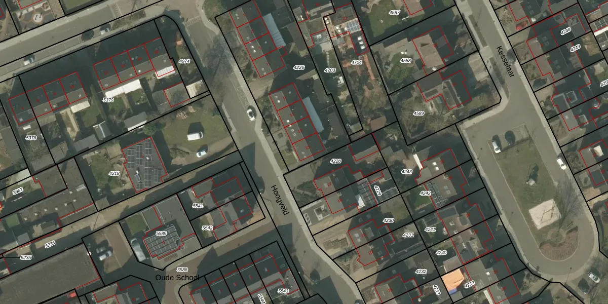 Hoogveld 15 is gelegen op kadastraal perceel DNE00G4226. Deze kadastrale aanduiding is uniek en wordt gebruikt door het Kadaster om eigendomsrechten en andere zakelijke rechten vast te leggen. Het perceel maakt onderdeel uit van de kadastrale gemeente Deurne.