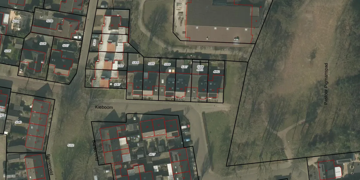 Kieboom 18 is gelegen op kadastraal perceel DNE00G5307. Deze kadastrale aanduiding is uniek en wordt gebruikt door het Kadaster om eigendomsrechten en andere zakelijke rechten vast te leggen. Het perceel maakt onderdeel uit van de kadastrale gemeente Deurne.