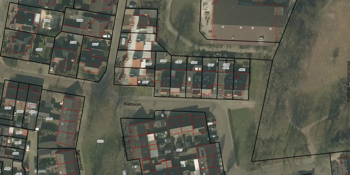 Kieboom 22 is gelegen op kadastraal perceel DNE00G5305. Deze kadastrale aanduiding is uniek en wordt gebruikt door het Kadaster om eigendomsrechten en andere zakelijke rechten vast te leggen. Het perceel maakt onderdeel uit van de kadastrale gemeente Deurne.