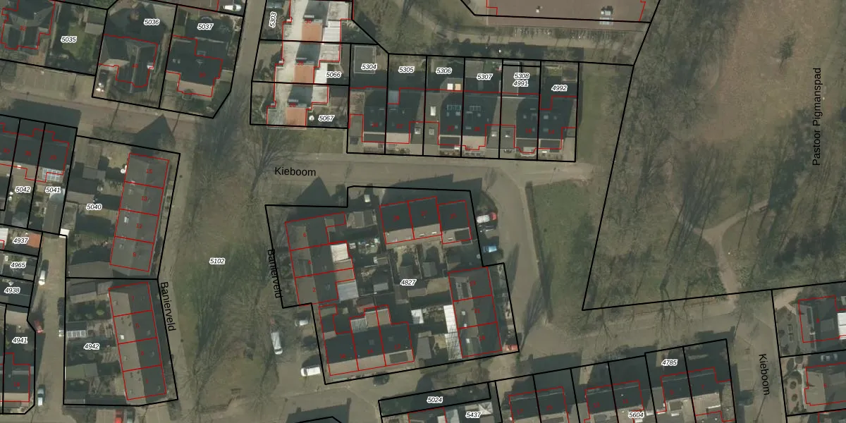 Kieboom 27 is gelegen op kadastraal perceel DNE00G4827. Deze kadastrale aanduiding is uniek en wordt gebruikt door het Kadaster om eigendomsrechten en andere zakelijke rechten vast te leggen. Het perceel maakt onderdeel uit van de kadastrale gemeente Deurne.