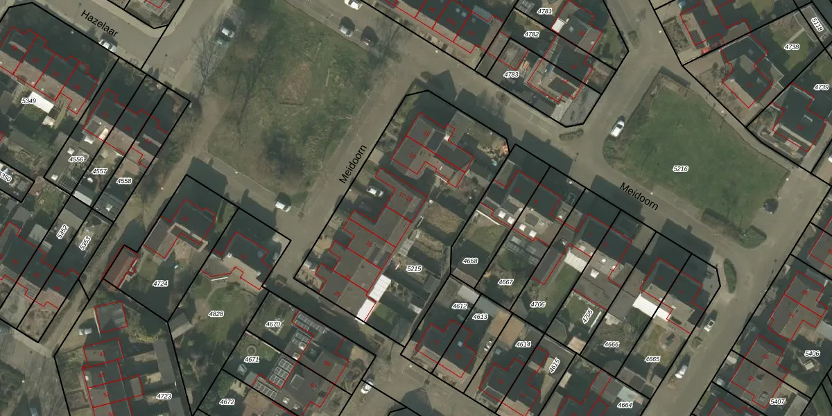 Het perceel waarop Meidoorn 17 staat heeft een oppervlakte van 1635 m². Dit is een zeer groot perceel. De perceeloppervlakte wordt geregistreerd door het Kadaster. Gedetailleerde informatie over de maten van dit perceel kunt u vinden in het rapport Kadastrale kaart met maatvoering van Meidoorn 17.