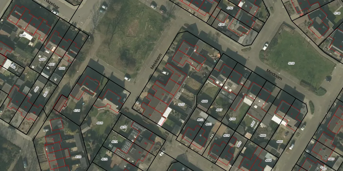 Het perceel waarop Meidoorn 23 staat heeft een oppervlakte van 1635 m². Dit is een zeer groot perceel. De perceeloppervlakte wordt geregistreerd door het Kadaster. Gedetailleerde informatie over de maten van dit perceel kunt u vinden in het rapport Kadastrale kaart met maatvoering van Meidoorn 23.