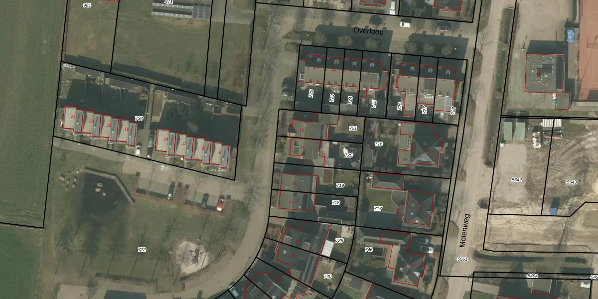 Gebruik de zoekbalk of klik op een perceel voor informatie over de adressen binnen dit perceel.